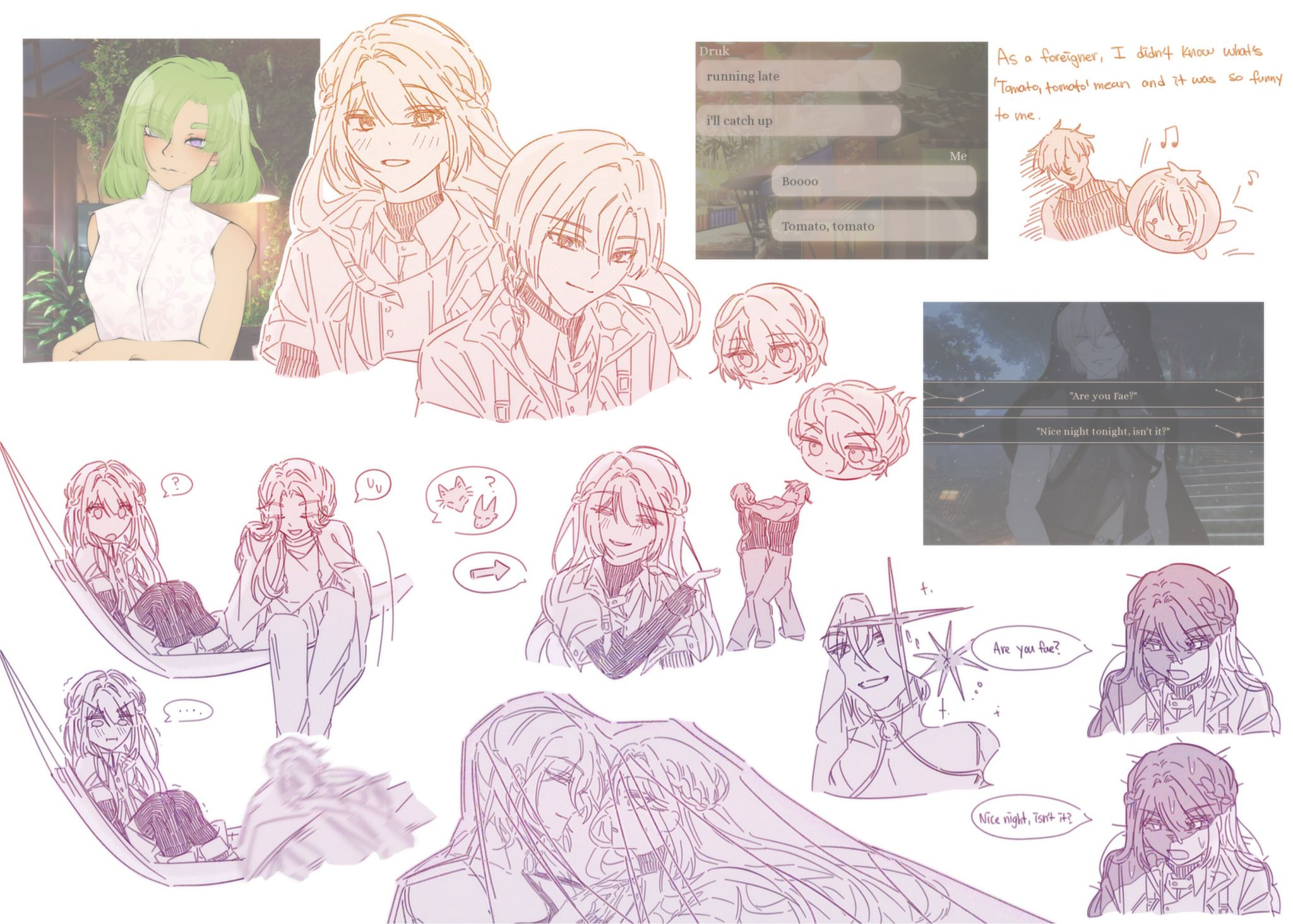 This month, we made some nice progress on Kuna'a's developmental edits! It's been a bit of a journey writing/editing Kuna'a (and Aisa's) route because they're so plot dense and keeping track of which lore to drop in each route, especially in a way that's not repetitive from what's been revealed in Central routes has been A Process. But Wudgey has been the world's strongest soldier and has really been helping to smooth out the kinks and slim things down so that Kuna'a's route feels juicy without feeling bloated and/or confusing.